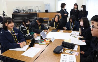 1月23日(金)、新見高校で新見高校主権者教育が開催されました。市内の中学生も参加し、各中学校で総合学習の時間に取り組んでいること高校生に伝えました。