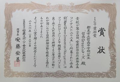 1月31日(土)カップヌードルミュージアム横浜にて、『第24回 安藤財団 自然体験企画コンテスト』の表彰式が行われました。今年度1年生が取り組んだ鯉が窪湿原のデジタルマップと案内看板が評価され、【推奨モデル特別校】と【ICT奨励賞】をいただきました。
