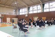 いよいよ明日は卒業式です。昨日、一昨日の公立高校一般入試を終え、3年生は晴れ晴れとした顔で登校して来ました。まず、学級で卒業式の練習をした後、全校で卒業式の予行を行いました。