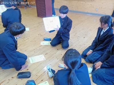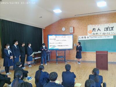 12月3日、第2回人権集会が行われました。各学年が取り組みを発表した後、縦割りで人権標語を考えました。